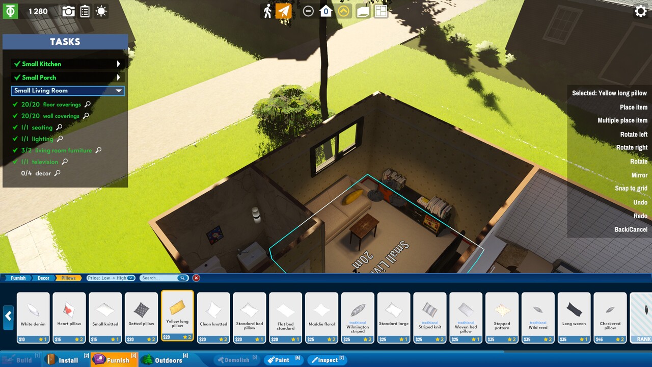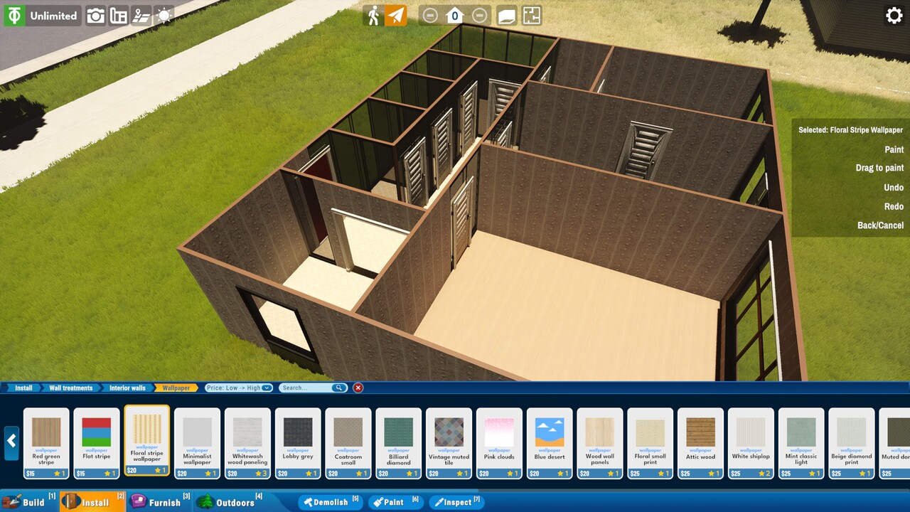 Mindenesetre a lehetőségek tárháza egy early access játékhoz mérten dicséretes. Építkezés és lakberendezés közben is rengeteg kategória és alkategória áll rendelkezésünkre. Válogathatunk a járólapok, parketták és padlók között, a tapéták és festékek közt, de ezernyi ajtó, ablak, fal, tető, tűzhely vagy épp lépcső rendelkezésre áll. Arra is van mód, hogy külön mázoljuk az ajtókat és a keretet, garázsajtót építhetünk be. Külön kategóriát képeznek a kültéri elemek, takaros kis kertet rendezhetünk be, de pavilont, kerítést, medencét vagy kerti játszóteret is építhetünk. A házon belül pedig helyiségenként oszlik meg a bútorzat és a dekoráció. Minden helyiségen belül vannak további alkategóriák, például a konyhánál a szekrények, a gépesítés, a kiegészítők, egyebek. Mindezeket a kissé elavult kezelőfelületen találjuk, amely közepesen átlátható és kezelhető.
