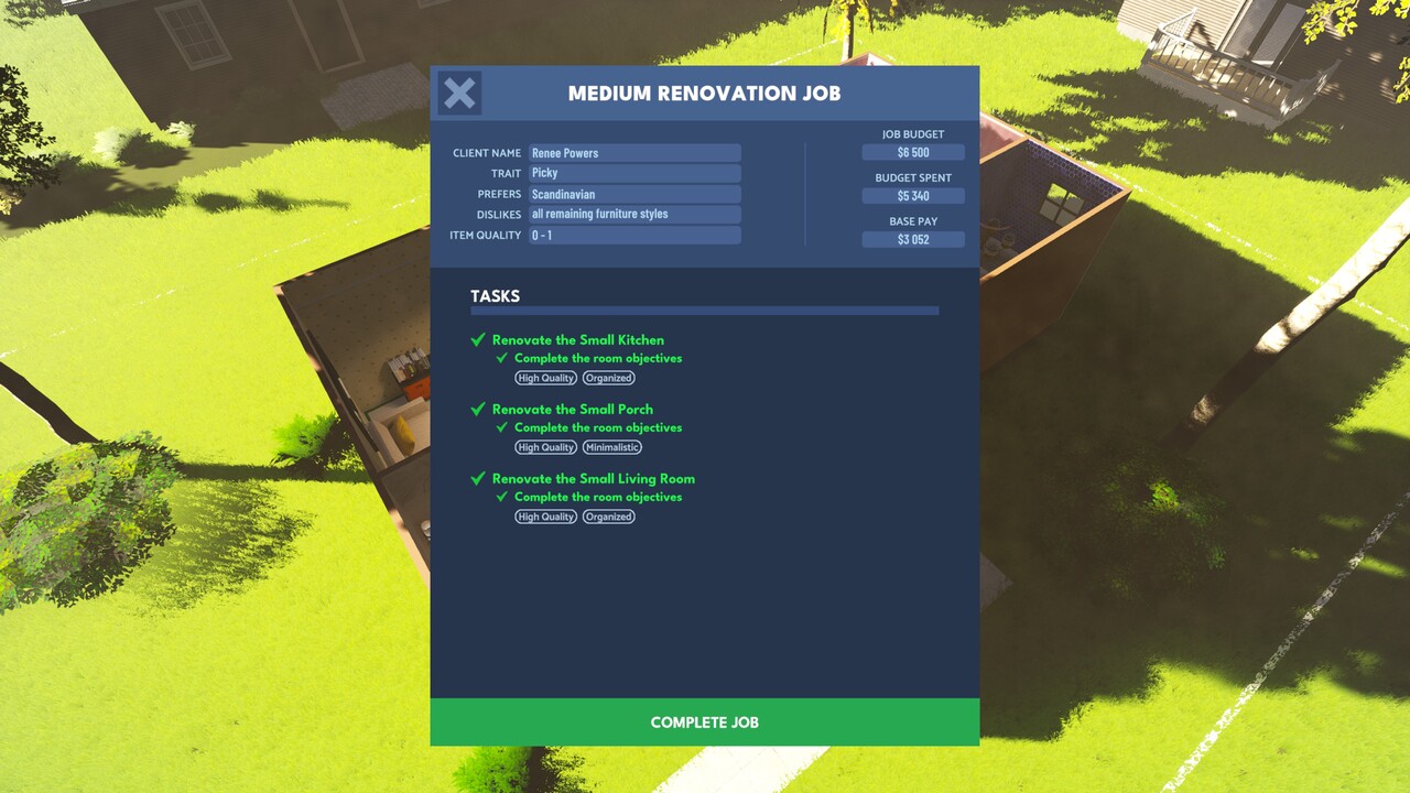 E téren a játék a lengyel szimulátorok szokásos sablonját követi, miszerint kezdetben csak apróbb munkákkal bíznak meg, de ezek teljesítésével lassan nő a reputációnk, amivel bővül a lehetőségeink tárháza is. Ahogy szinteket lépünk, idővel a kis falucskából a nagyobb kertvárosba is átléphetünk, majd onnan jöhet a nagyváros vagy épp a luxusnegyed. Eleinte kisebb renoválásokkal bíznak meg, jellemzően egy-két szobát vagy helyiséget kell kipucolnunk és egy picit kiglancolnunk. Lecserélni a régi tapétát és padlót, elhelyezni néhány bútort és már kész is. Nem kell különösebb szépérzék, nem kell túlmisztifikálni, nem kell adni a külcsínre, csak darabra meglegyenek a követelmények. Kicsit (nem kicsit) illúzióromboló, de szerencsére később már ennél jóval összetettebb feladatok is várnak ránk házon belül és kívül is.